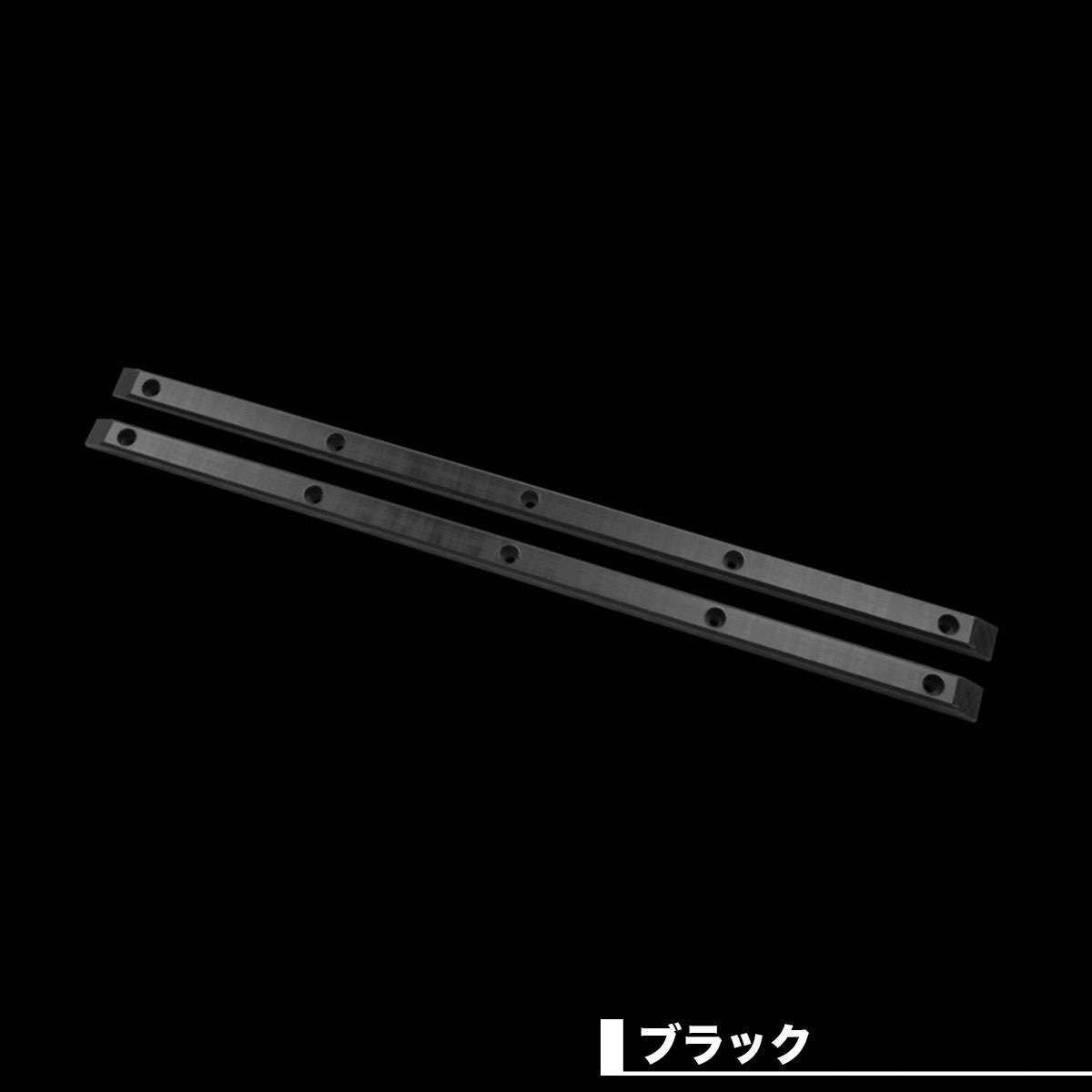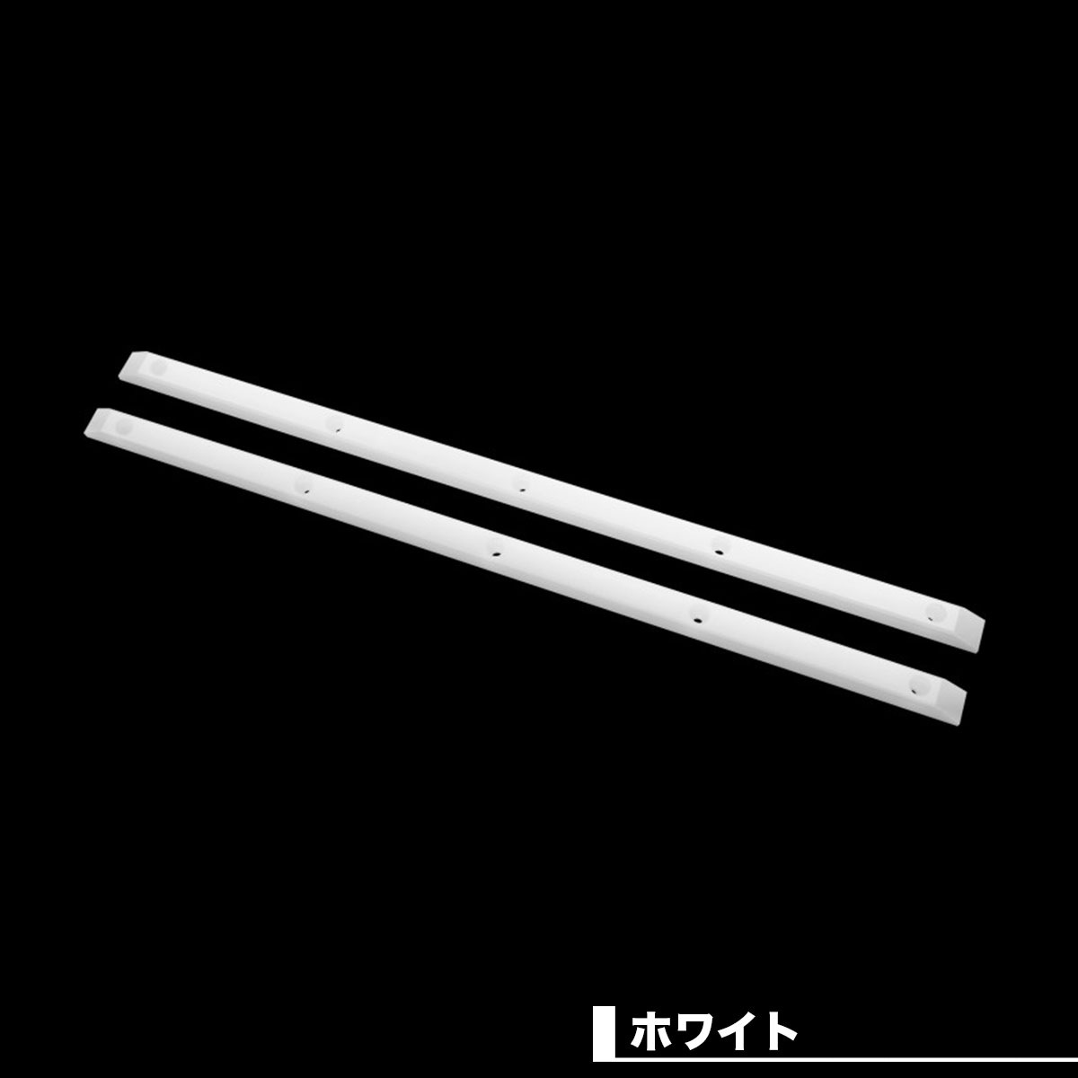 取り付けネジがあらかじめ開けられたレール 2 本。