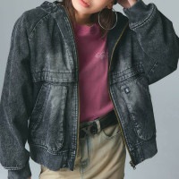 加工感のあるデニムパンツと合わせて、メンズライクなストリートスタイルに。
