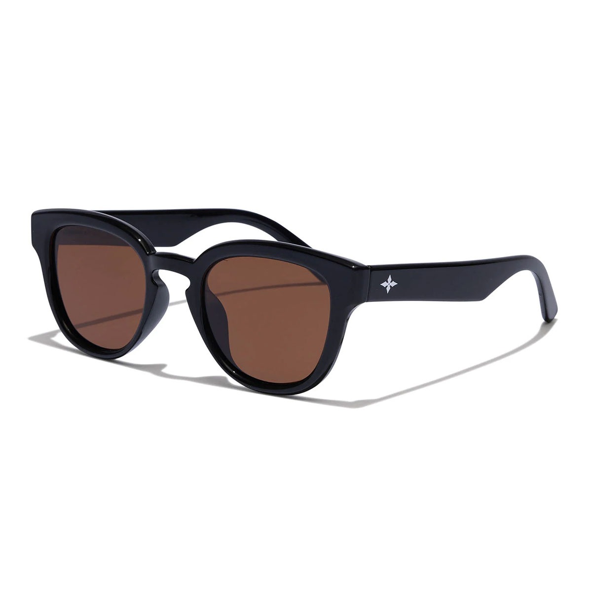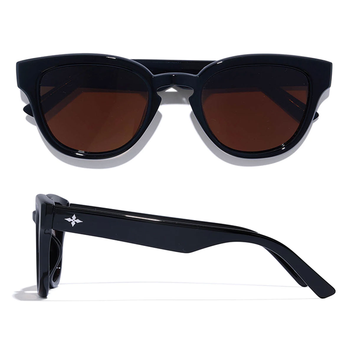 このラウンドサングラスは、光学的なディテールと力強い眉のラインが、どんなスタイルにもFit。 ブラウンの偏光レンズを備えた、他にはない光沢のある黒のサングラスで、控えめな雰囲気と高級感を演出しましょう。