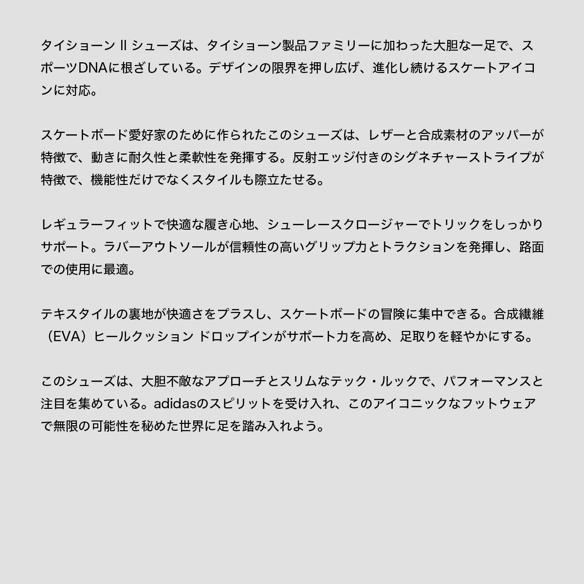 タイショーン II シューズは、タイショーン製品ファミリーに加わった大胆な一足で、スポーツDNAに根ざしている。デザインの限界を押し広げ、進化し続けるスケートアイコンに対応。