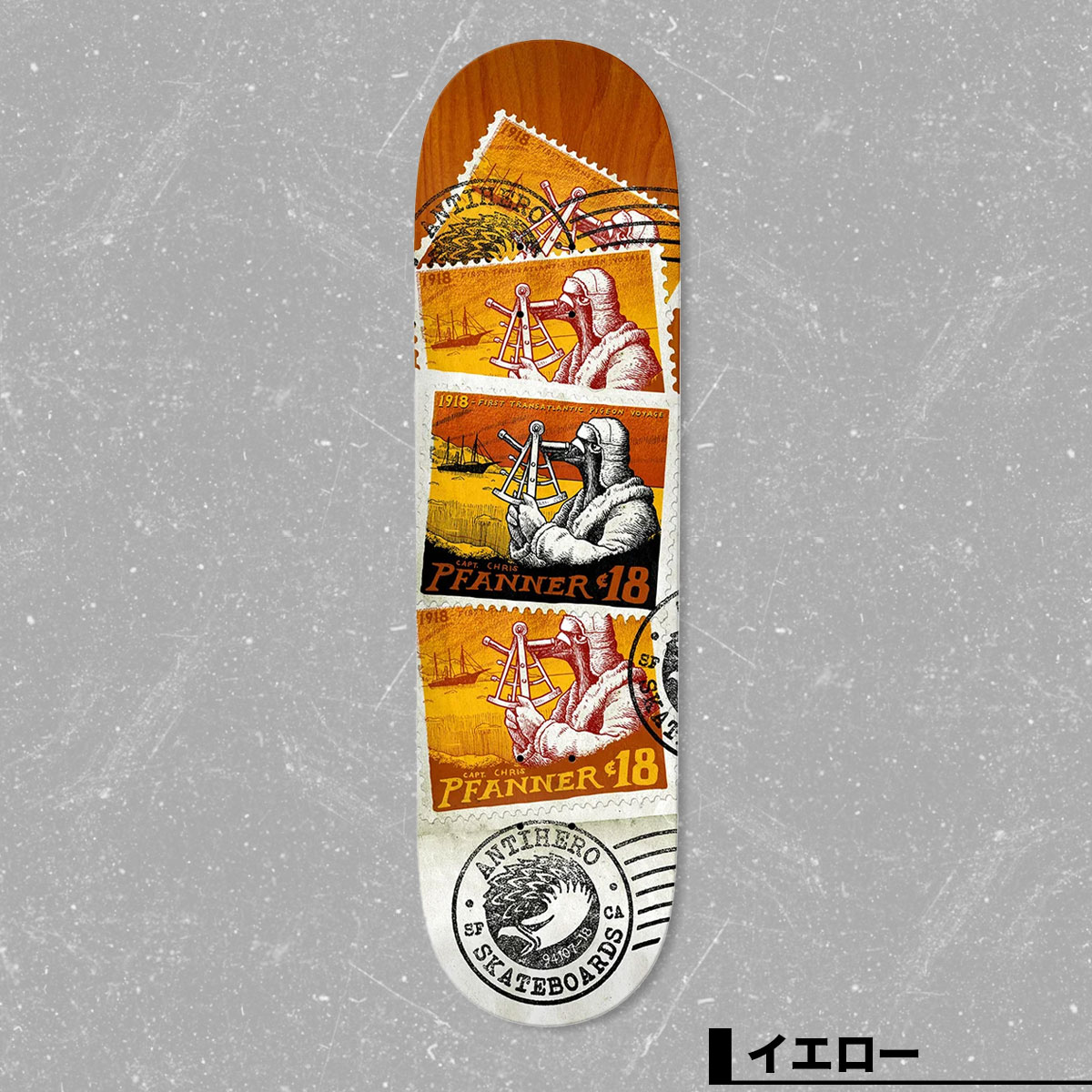 【国内正規取扱店】 ANTI HERO/アンチヒーロー POSTAL PRO SERIES ART TODD FRANCEIS PFANNER / DAAN POSTAL FRANCIS スケートボード デッキ スケートボードの老舗デッキブランド、ANTIHERO(アンチヒーロー)。 Anti Hero CHRIS PFANNER POSTAL は、オーストリア出身のプロスケーター Chris Pfanner(クリス・ファナー) のシグネチャーモデルと、オランダ出身のスタイルアイコン Daan Van Der Linden(ダーン・ヴァン・デル・リンデン) のシグネチャーモデル 【商品詳細】 ■カラー:ホワイト / イエロー ■サイズ: 【8.25inch】 ■長さ:81.6cm / 幅:21.0cm ■ノーズ:18.1cm / テール:17.4cm ■ウィールベース:36.0cm ■コンケーブ:中 / キック:中 【8.5inch】 ■長さ:80.9cm / 幅:21.6cm ■ノーズ:18.1cm / テール:17.0cm ■ウィールベース:35.7cm ■コンケーブ:中 / キック:中