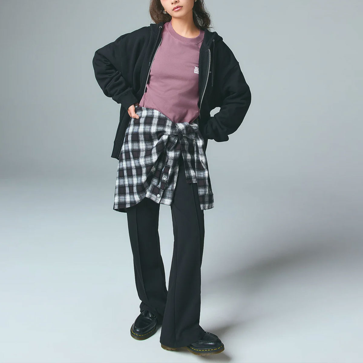 スタイリングに重宝する定番スウェットパーカー