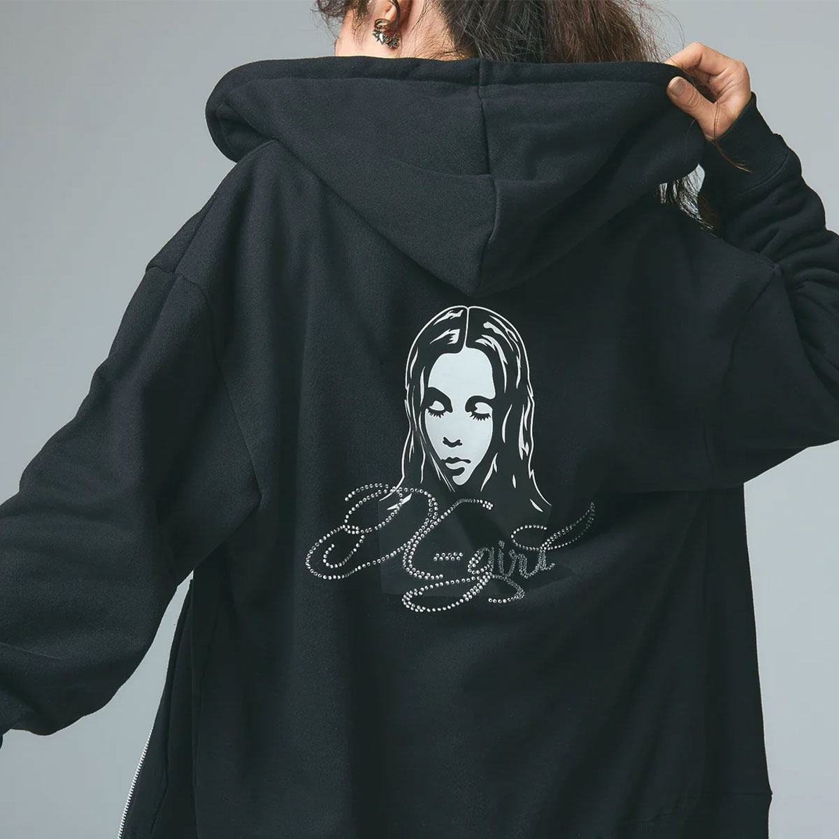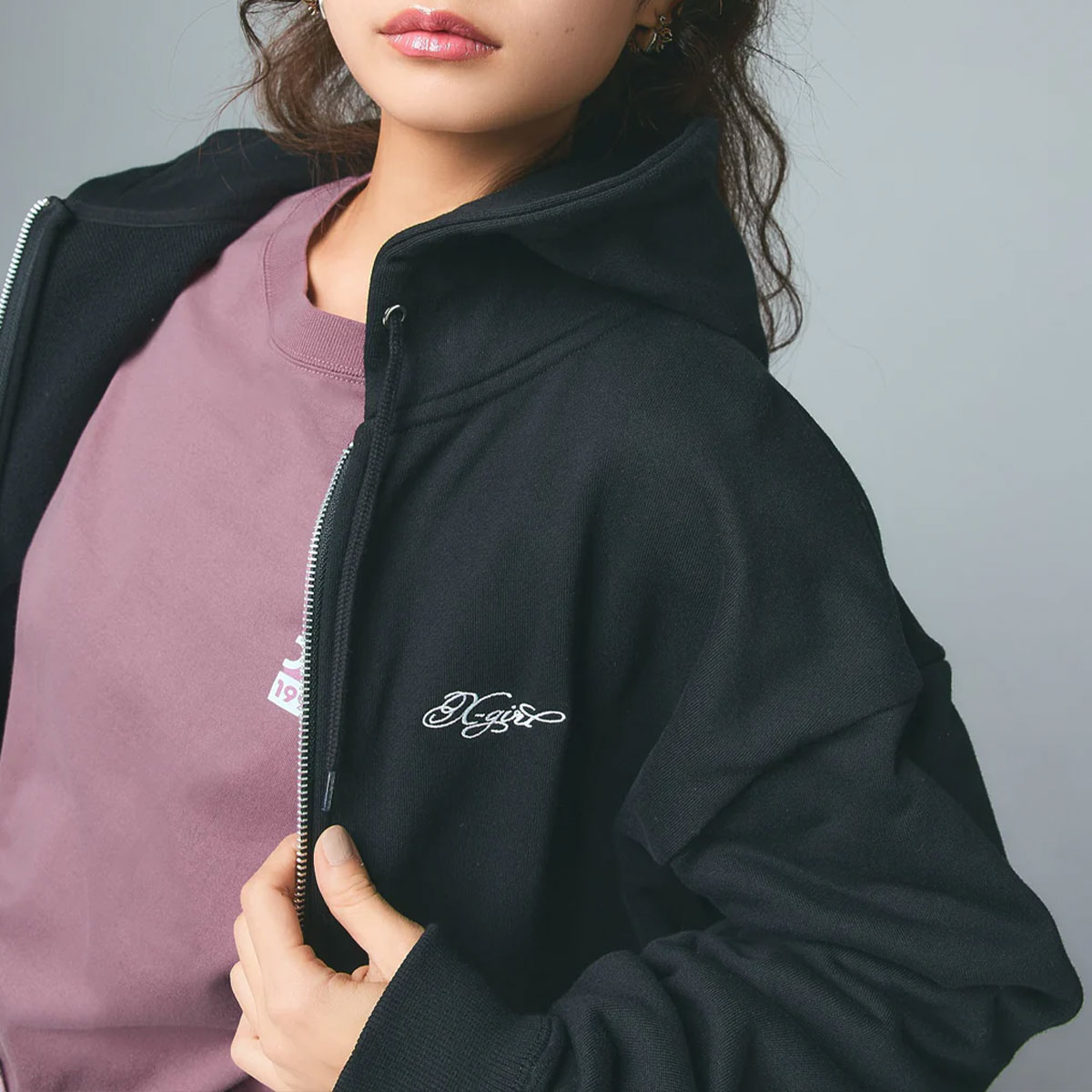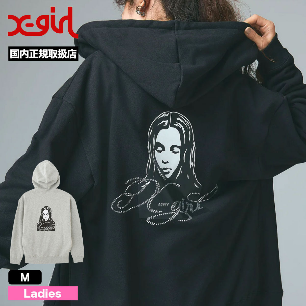 エックスガール レディース ジップパーカー xgirl トップス フェイス ロゴ ラインストーン 全2色 M ストリート人気ブランド X-girl 2026 新作【105261012017】