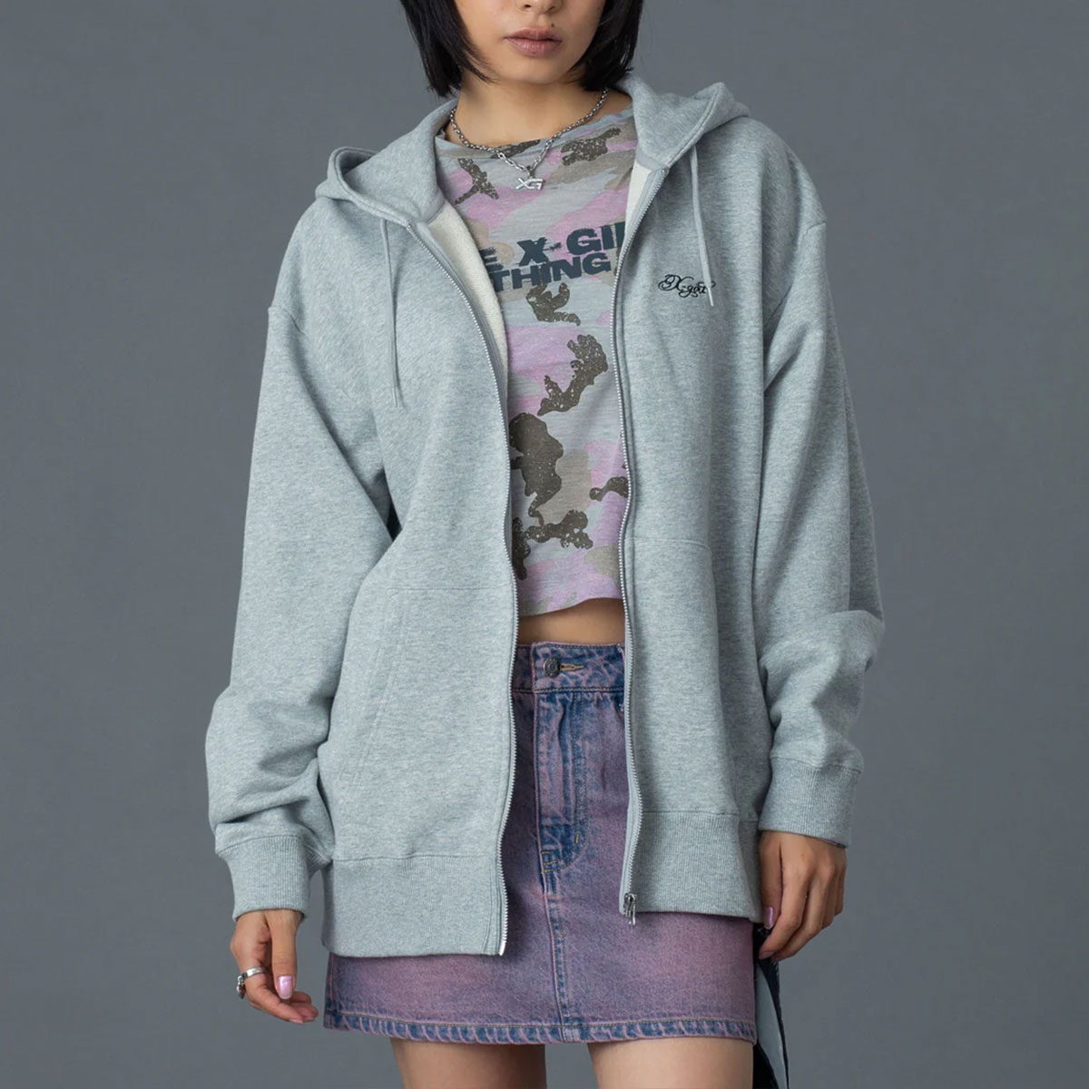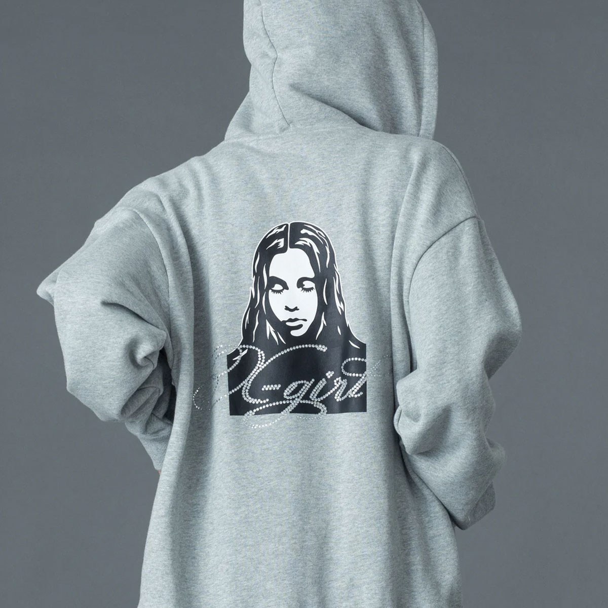 ラインストーンでX-girlロゴを表現した、トレンドライクなディテールが魅力。