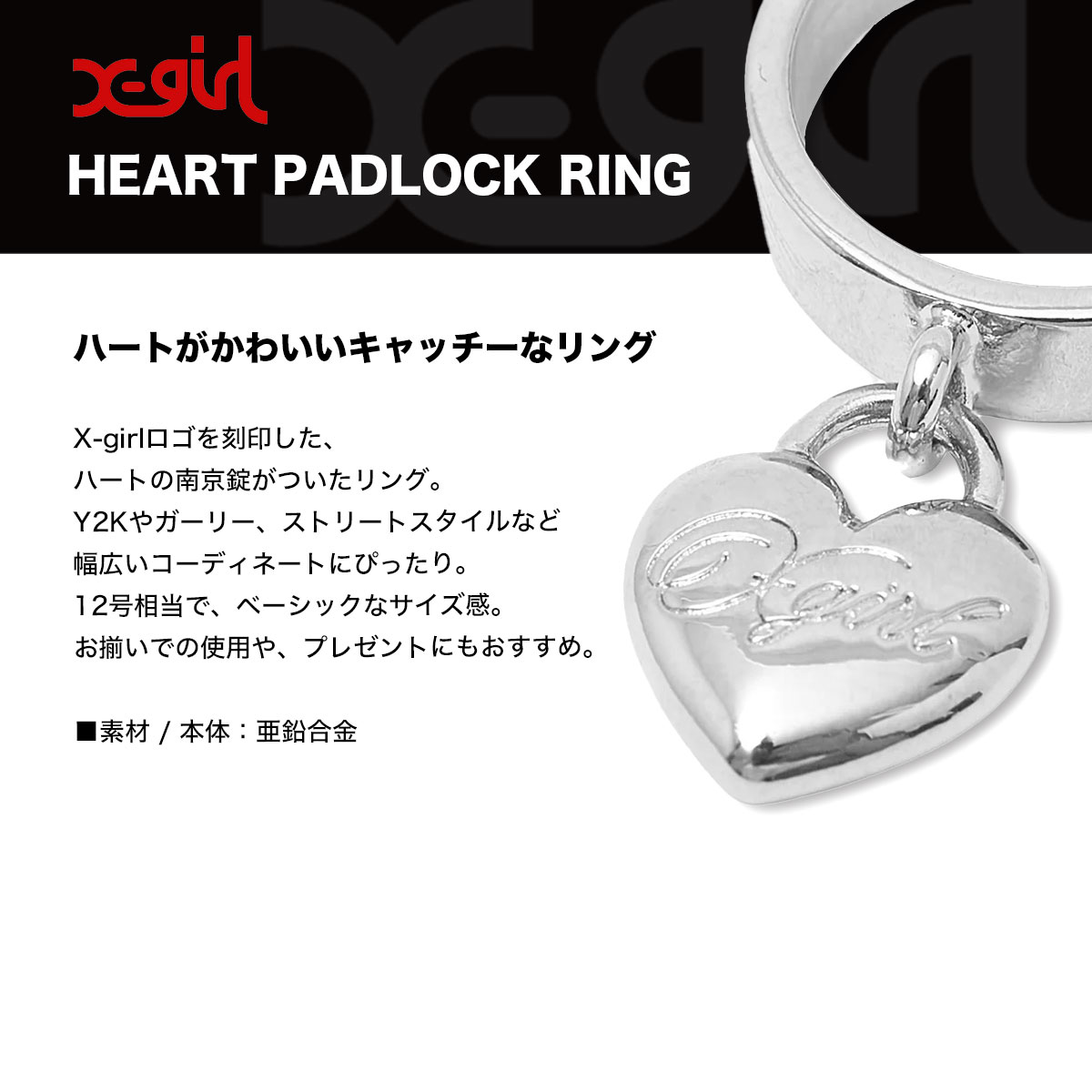 エックスガール レディース ハート シルバーリング 指輪 南京錠 ロゴ 12号相当 プレゼント ストリート人気ブランド X-GIRL 通販 2026 新作【105261054020】