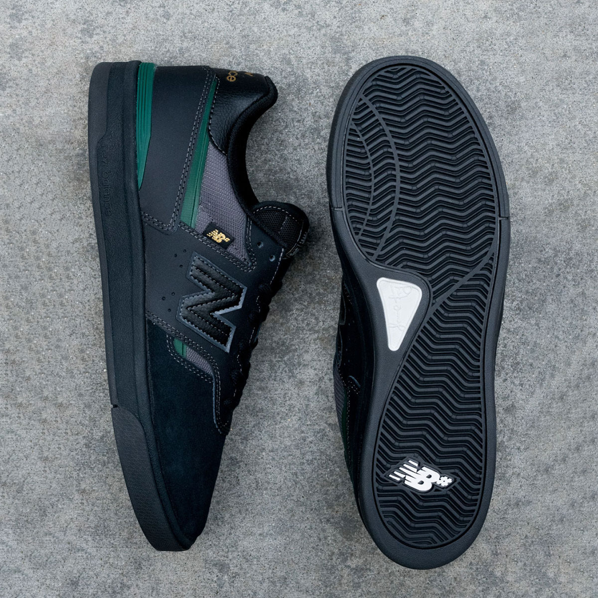 「New Balance Numeric(ニューバランス ヌメリック)」ラインの定番スケートシューズのひとつで、プロスケーター Jamie Foy(ジェイミー・フォイ) のシグネチャーモデルがベース。基本的には耐久性・快適性・パフォーマンスを高いレベルでバランスさせた設計で、スケートシーンはもちろんタウンユースにもフィットする一足です。 アッパーには耐久性に優れた素材を使用し、つま先周りは摩耗に強く、デッキとの相性も抜群。インソールには衝撃吸収性の高いCSP(Cushioned Support)を搭載し、長時間のライディングでも快適な履き心地をキープします。