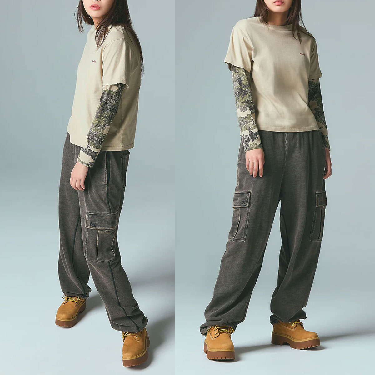 今シーズンは、カモフラージュ柄のボトムスと合わせた旬なコーディネートがおすすめ。